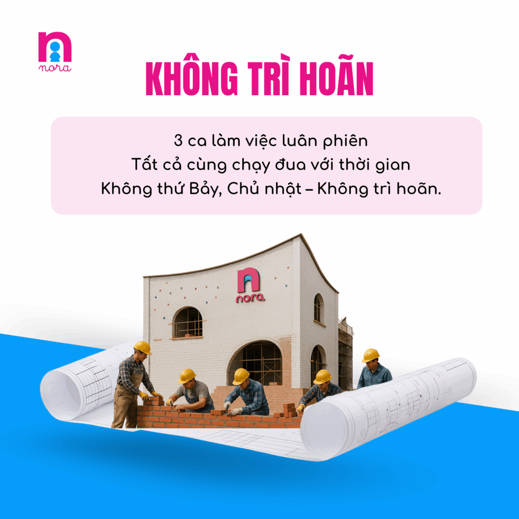 🔧 Từng ngày trôi qua, không có ngày nào bị bỏ lỡ. 3 ca làm việc luân phiên, thợ xây, kiến trúc sư, giáo viên đều tất cả cùng chạy đua với thời gian – Không thứ Bảy, Chủ nhật – không trì hoãn.