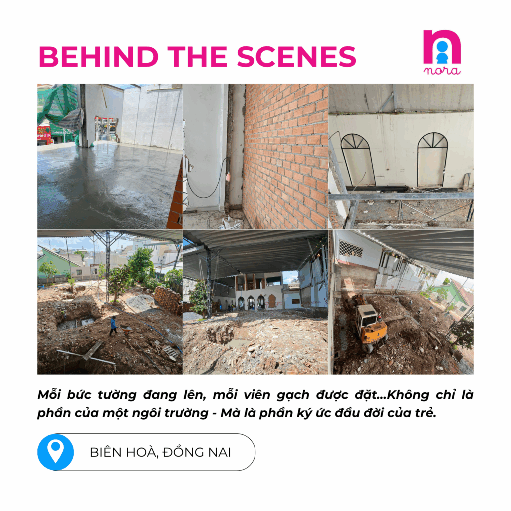 Mỗi bức tường đang dần lên hình, mỗi viên gạch được đặt vào đúng chỗ – là từng bước NORA đang chuẩn bị cho những ký ức tuổi thơ hạnh phúc của các con.