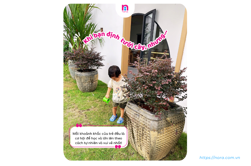 Khoảnh khắc đáng yêu tại NORA Preschool Biên Hoà: Bạn nhỏ mang chiếc bình tưới xinh xắn, hăng say “chăm sóc” thiên …