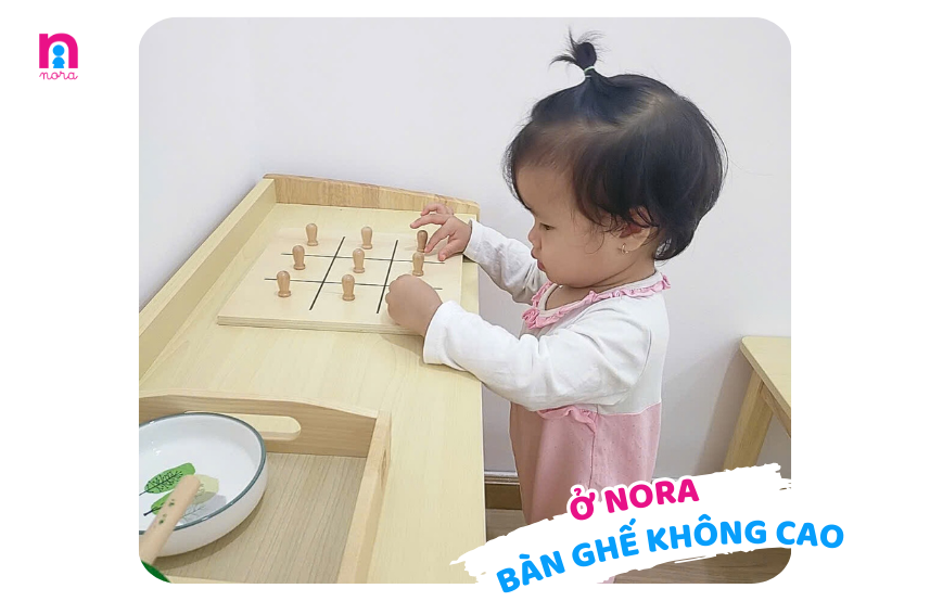 Có ai để ý không, bàn ghế, kệ sách, khay đồ chơi ở NORA Preschool đều “bé xíu xiu” và vừa khít …
