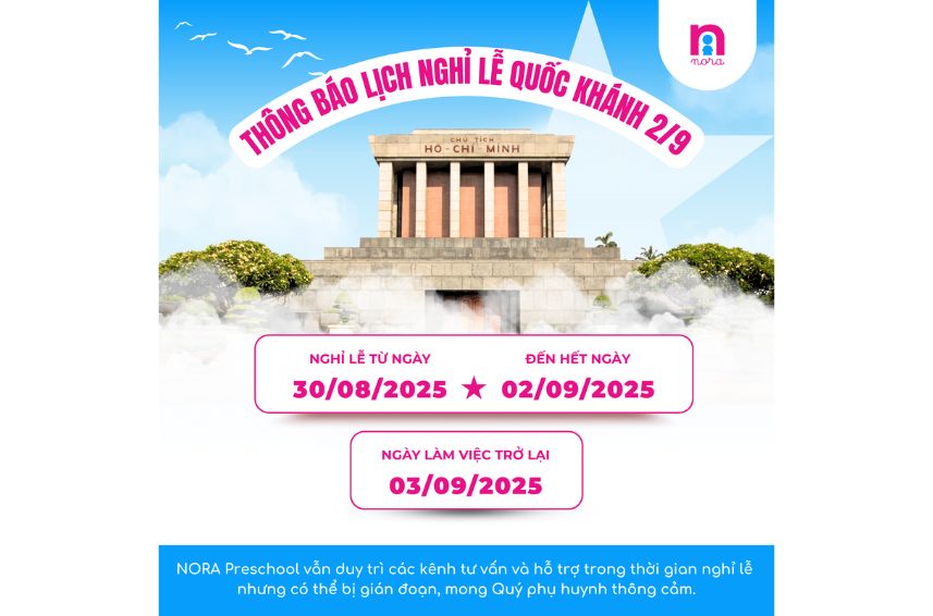 Kính gửi Quý phụ huynh, NORA Preschool Biên Hoà xin trân trọng thông báo lịch nghỉ lễ Quốc Khánh 2/9 như sau: …