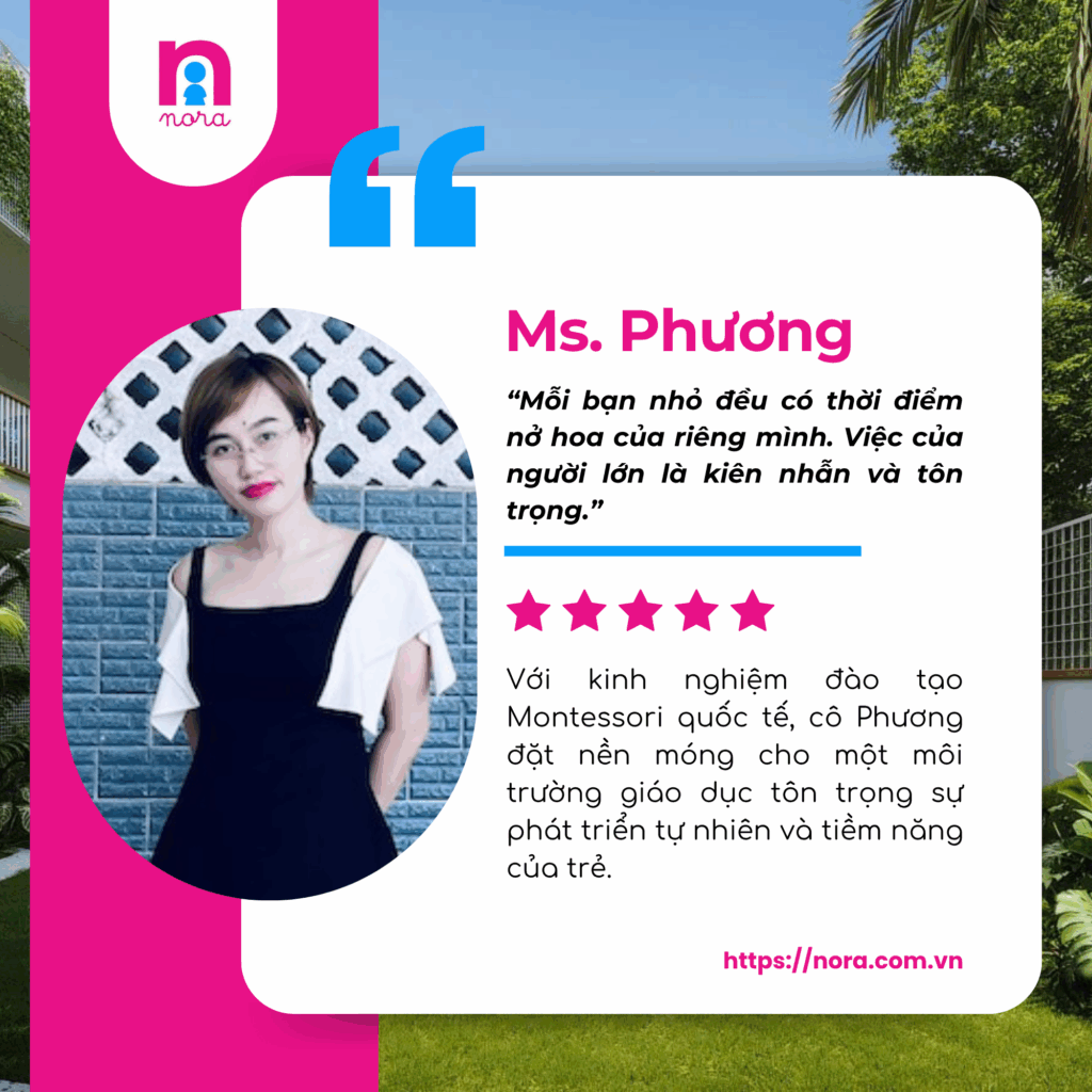 Tại NORA Preschool, mỗi giáo viên không chỉ là người “truyền đạt kiến thức”, mà là người giữ lửa, nuôi dưỡng và đồng hành với trẻ từ những bước đầu tiên trong hành trình lớn khôn. Họ là những người lặng lẽ gieo hạt, không ồn ào nhưng đầy nội lực.
