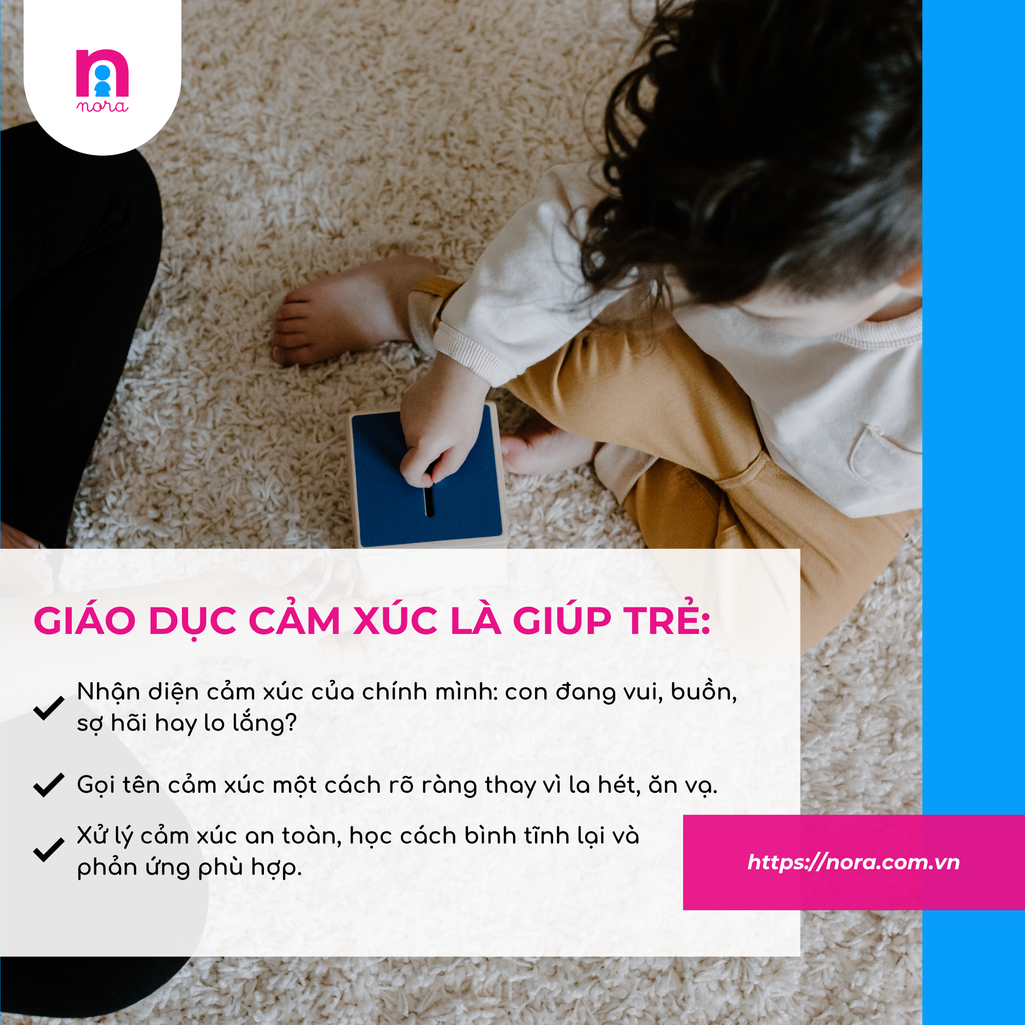 📩 Ba mẹ muốn hiểu rõ hơn về cách NORA áp dụng giáo dục cảm xúc trong từng giờ học, từng tình huống đời thường? Nhắn cho NORA để cùng chia sẻ hành trình nuôi dưỡng một thế hệ biết yêu thương và biết lắng nghe chính mình.