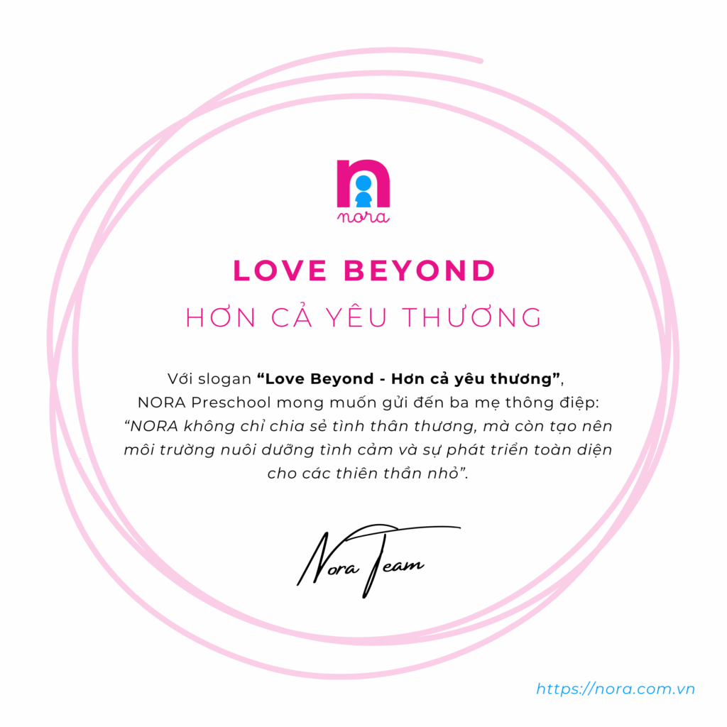 Với slogan “Love Beyond – Hơn cả yêu thương”, NORA mong muốn gửi đến ba mẹ thông điệp: “NORA không chỉ chia sẻ tình thân thương, mà còn tạo nên môi trường nuôi dưỡng tình cảm và sự phát triển toàn diện cho các thiên thần nhỏ”.