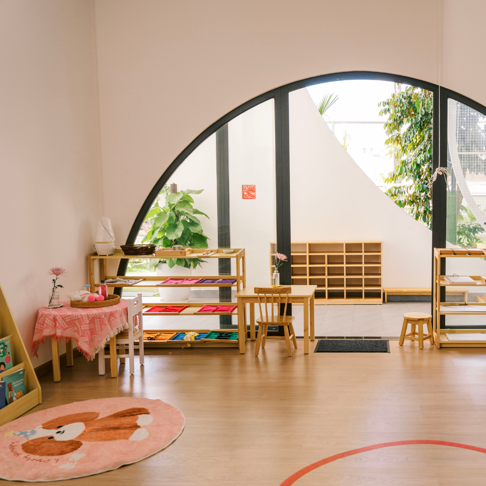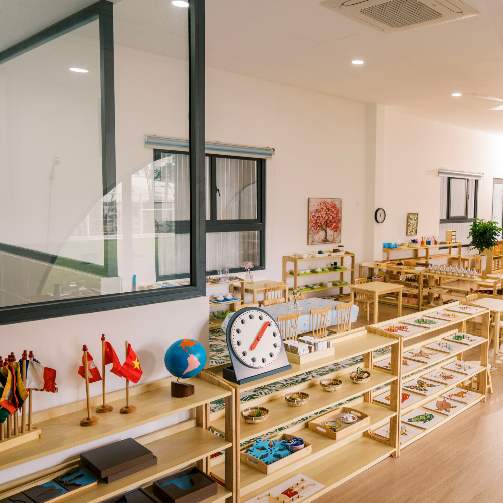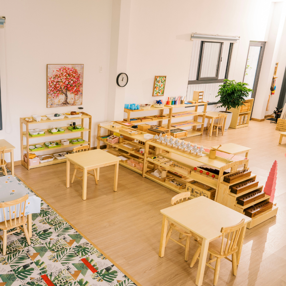 Với không gian học tập chuẩn Montessori quốc tế, kết hợp hài hòa giữa trải nghiệm tự nhiên, cảm xúc và kỹ năng sống, trẻ sẽ phát triển toàn diện từ bên trong ra ngoài.
