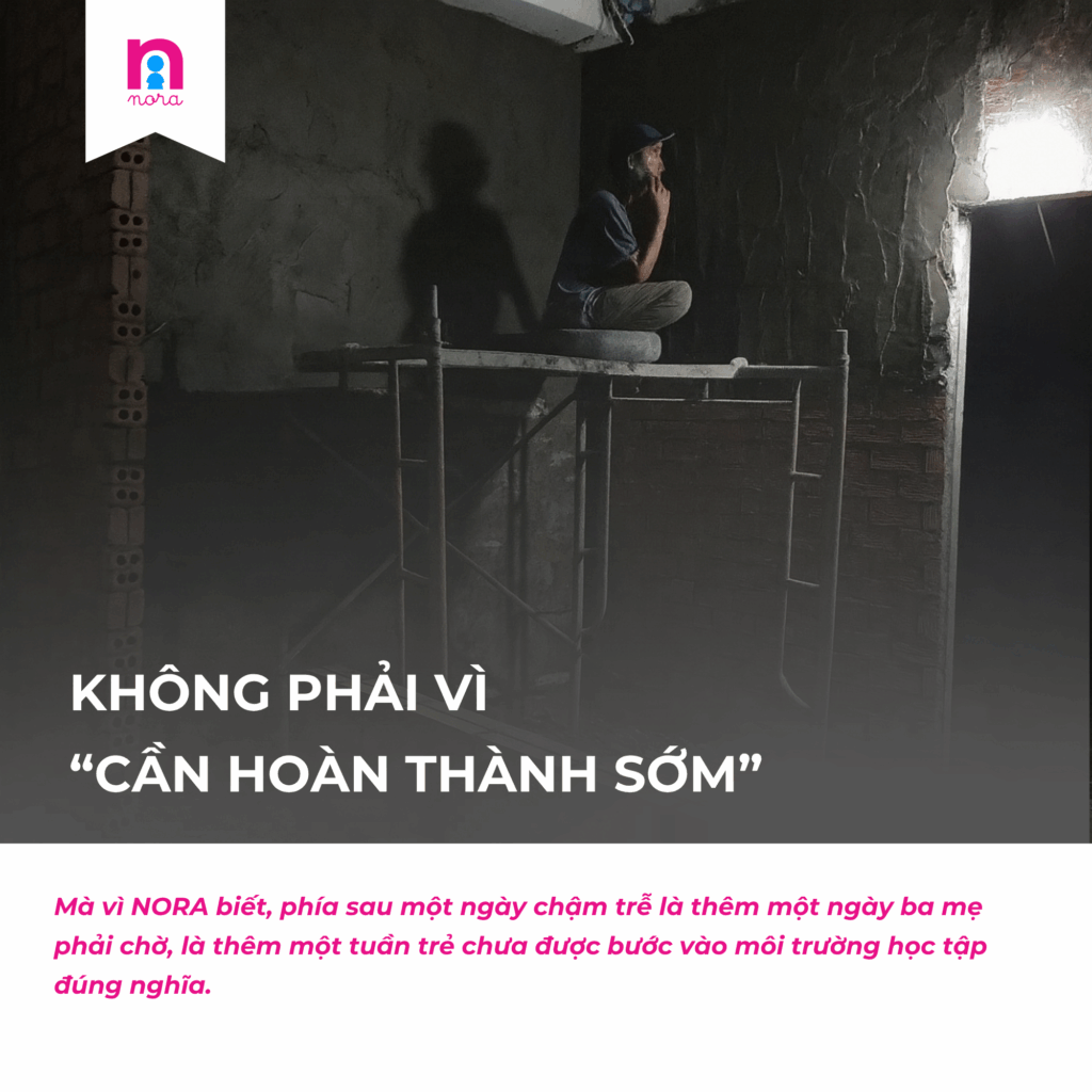Không phải vì “cần hoàn thành sớm”. Mà vì NORA biết, phía sau một ngày chậm trễ là thêm một ngày ba mẹ phải chờ, là thêm một tuần trẻ chưa được bước vào môi trường học tập đúng nghĩa.