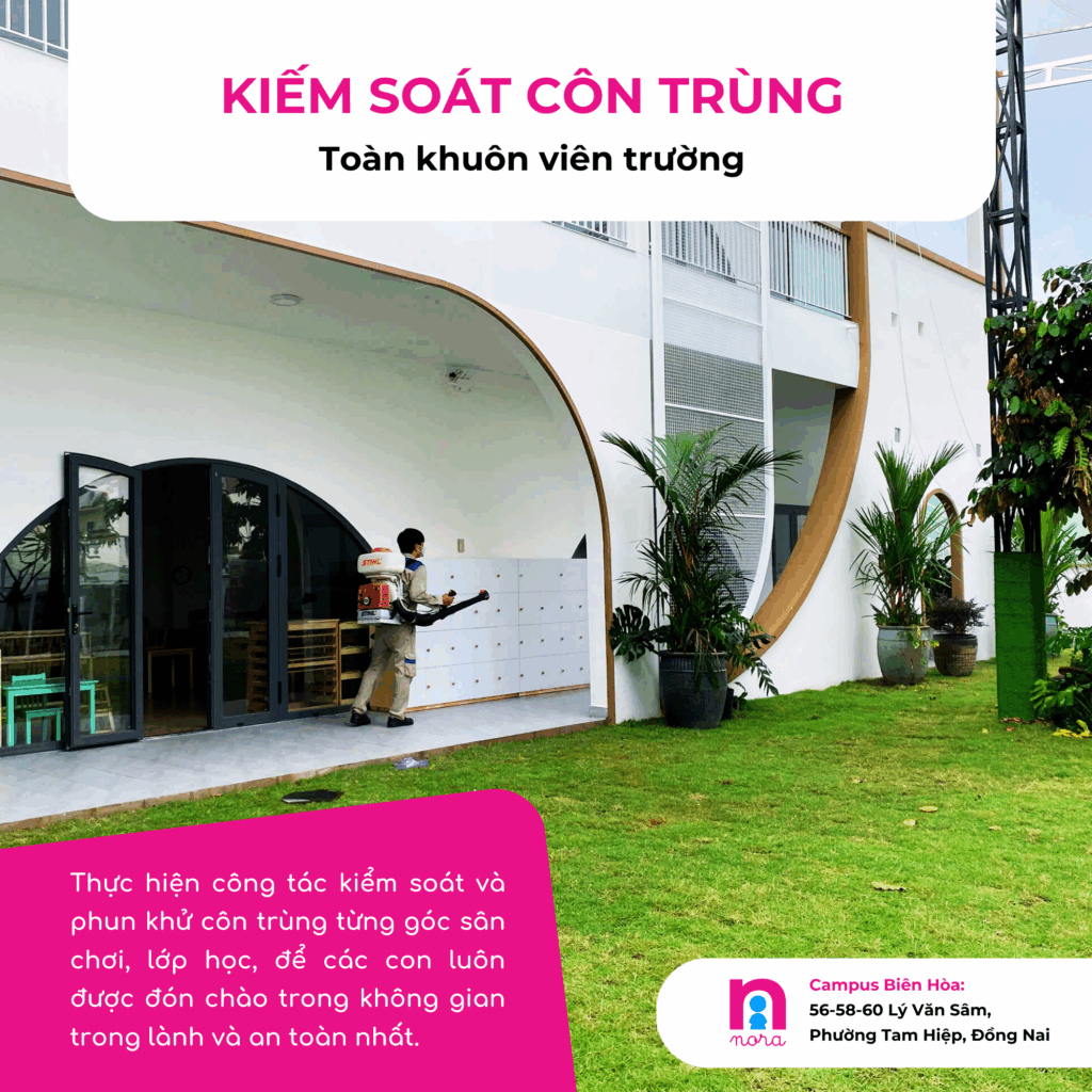 ❓Kỳ nghỉ lễ vừa rồi, ba mẹ và các con đã làm gì? Còn NORA Preschool Biên Hoà thì tranh thủ thời gian này để thực hiện công tác kiểm soát và phun khử côn trùng toàn khuôn viên trường đó nha!
